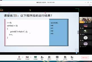 2020年3月26日星期四,上午八点,BB贝博艾弗森许颖梅老师通过腾讯会议+雨课堂进行了《C语言程序设计》课程教学范式改革公开课授课,BB贝博艾弗森副经理李海涛,张志宏、黄艳峰等几位老师在线观看了课程直播,并进行了指导。