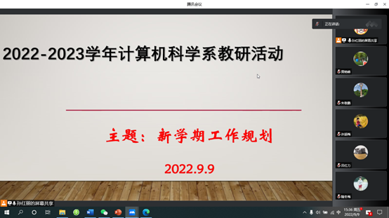 99日下午,计算机科学系采用腾讯会议开展了新学期第一次教研活动。系主任孙红丽主持本次活动,对本学期教学相关活动进行安排,教研室成员同时就课程思政开展进行研讨。