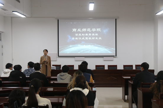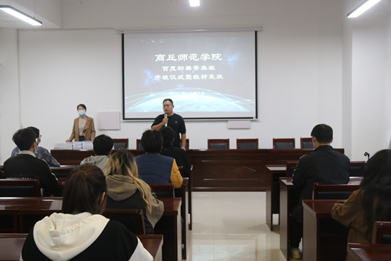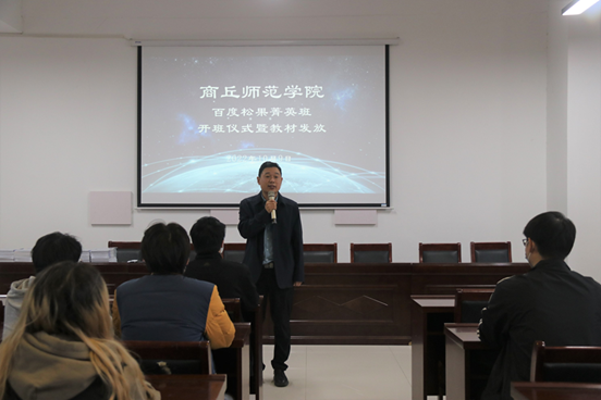 仪式开始,刘佳首先向同学们表示祝贺,并详细介绍了此次菁英班的培养目标。他指出,BB贝博艾弗森百度松果人才培养精英班是由公司和百度公司合作共建,目的是为了培养出更多创新性、应用型、技能型、复合型人才,也是公司不断推进高水平应用型大学建设的要求,希望同学们抓住机会,认真学习,以当代青年老员工的身份勇担时代使命,积极响应科技强国的号召,学好专业技能,以科技助力中华民族伟大复兴。随后王帅芳对精英班培养计划和课程安排进行详细解读,彭会锋则对班级管理和上课纪律进行要求。最后,三位老师共同为同学们发放了教材。
