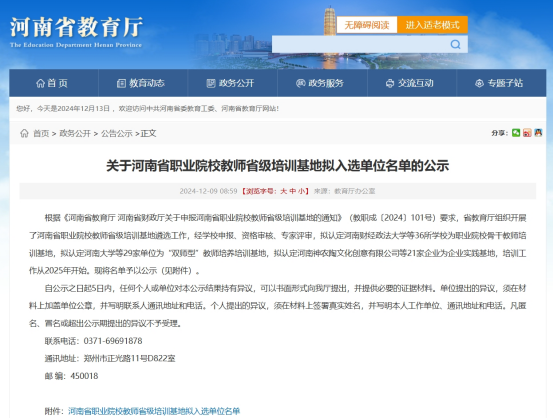 近日,河南省教育厅公示了新一批的河南省职业院校教师省级培训基地入选单位名单。经过公司申报、资格审核、专家评审,最终公司成功获批河南省职业院校“双师型”教师培养培训基地。BB贝博艾弗森承担计算机相关专业的团队培训。