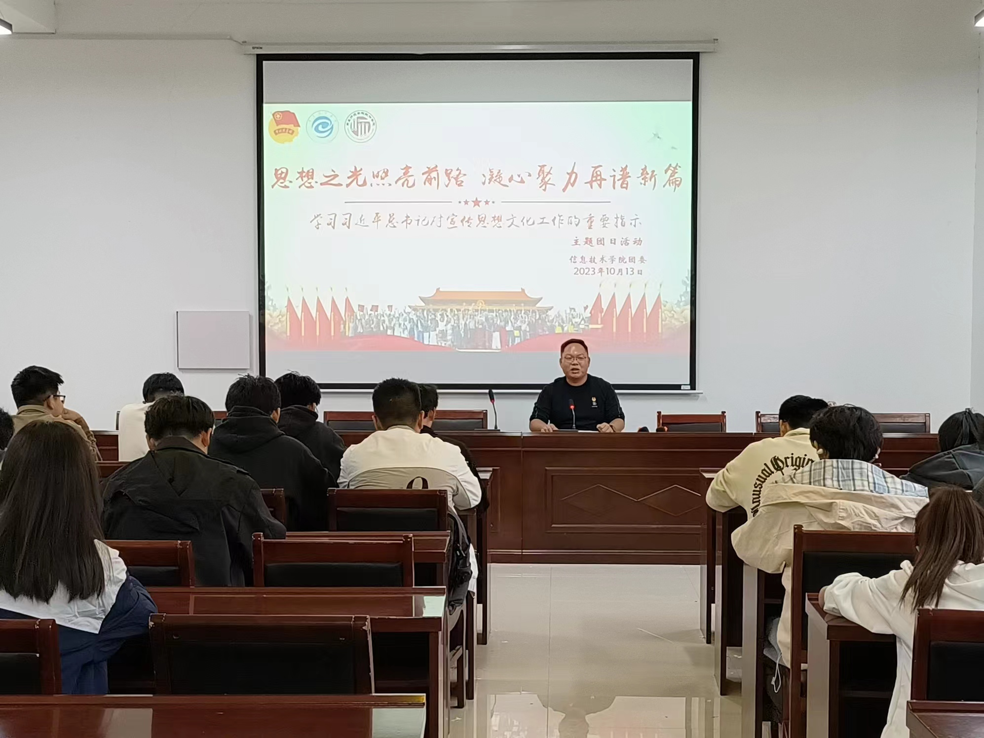 10月13日,BB贝博艾弗森团委副书记彭会锋在梁园校区三商楼112会议室为各支部优秀团员代表开展了专题宣讲会,通过宣讲交流让同学们明确了作为新时代青年老员工应当担负起的使命和责任,以习近平总书记的重要指示为指导,立足身边的生活学习,以实际行动助力新时代宣传思想文化工作。
