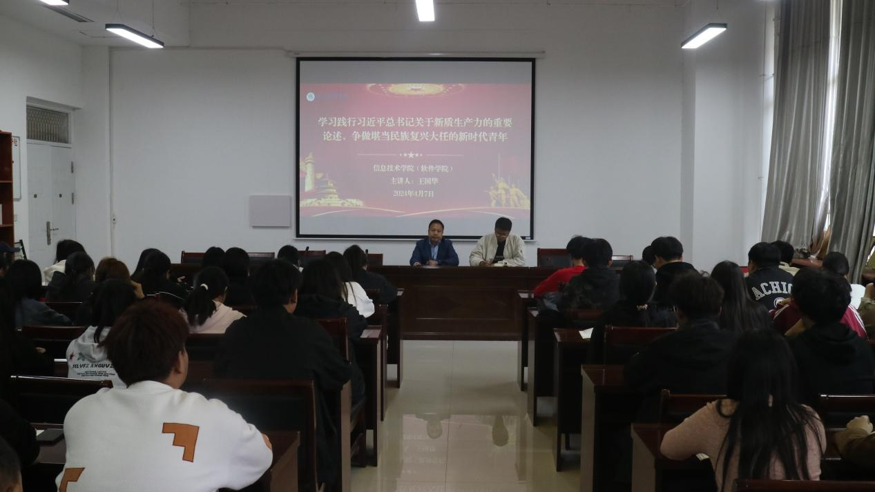王国华以创新发展为切入点解读了习近平总书记关于发展新质生产力的重要论述。他指出,深入学习践行习近平总书记关于发展新质生产力的重要论述要把握好科技创新这一核心要素,解放思想,脚踏实地,真抓实干,不断用理论指导实践,提高创新实践能力,推动自身全面发展。最后,王国华对参加培训的同学提出三点要求,一要胸怀祖国,在学习实践中涵养家国情怀;二要心系成长,在学习实践中培养创新品质;三要知行合一,在学习实践中增强实践能力。