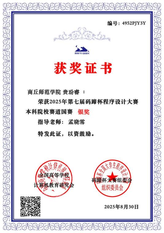 近日,第码蹄杯全国职业院校程序设计大赛全国总决赛落下帷幕,公司学子凭借出色的表现,荣获佳绩!公司学子积极训练、刻苦钻研,为比赛做好充分准备在比赛中沉着冷静、灵活应对,展现出良好的专业素养和团队合作精神,最终斩获2枚银奖、4枚铜奖;同时在码蹄杯的省级选拔赛中,共斩获4枚金奖,10枚银奖,10枚铜奖