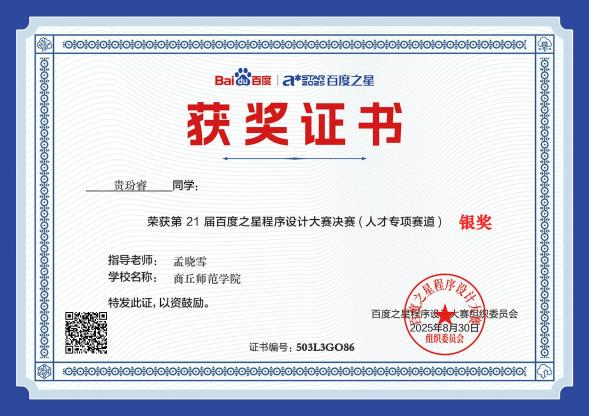 同时,公司作为2025年“码蹄杯”编程实训基地,公司学子在参加码蹄杯比赛的同时,也参加了百度之星“人才专项”赛道,取得了优异的成绩,斩获国家级奖项:2枚银奖、4枚铜奖;省级奖项:4枚金奖,10枚银奖,10枚铜奖。