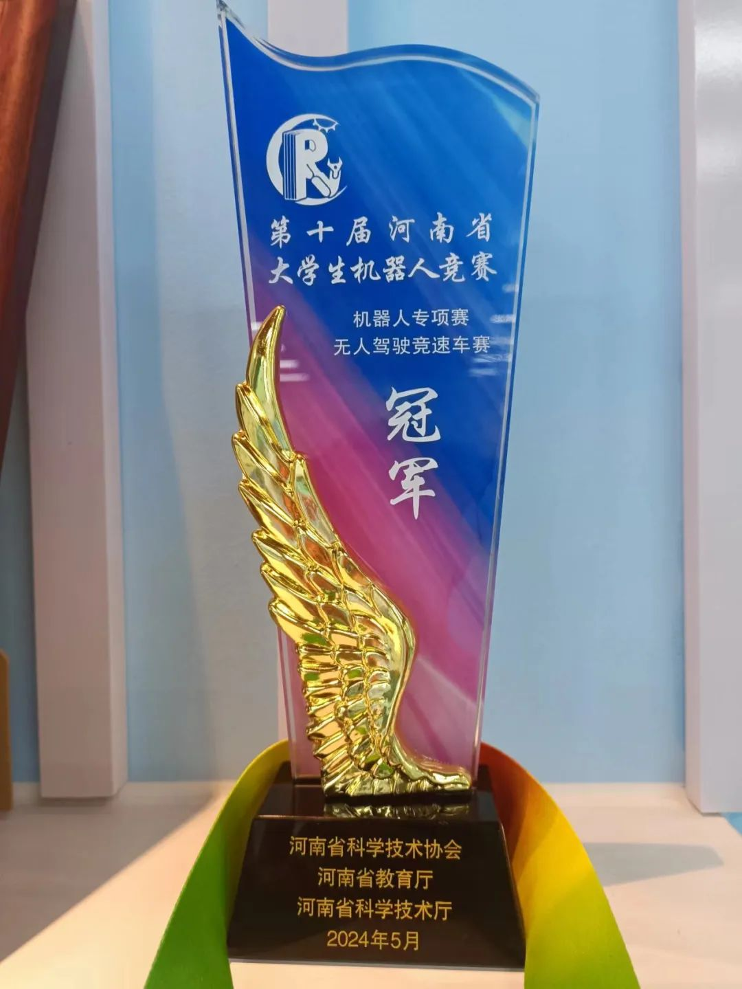 河南省老员工机器人竞赛是省级一类竞赛,每年举办一次。大赛积极响应创新创造的时代主旋律,深入贯彻“创新驱动、科教兴省、人才强省”战略,着力培养我省老员工的实践能力、创新能力、协作精神和科学素养,为优秀人才的脱颖而出提供平台。本届大赛共有来自郑州大学、河南大学、河南科技大学、华北水利水电大学等省内83所高校的762支参赛队伍、2200余名选手参加。赛前,春韵队成员柯庆钦、程龙、董儒豪在指导老师张欢庆、方莹的带领下积极训练、刻苦钻研,不断总结经验,做好了充分准备;在比赛中沉着冷静、灵活应对,最终斩获无人驾驶竞速车赛项冠军。
