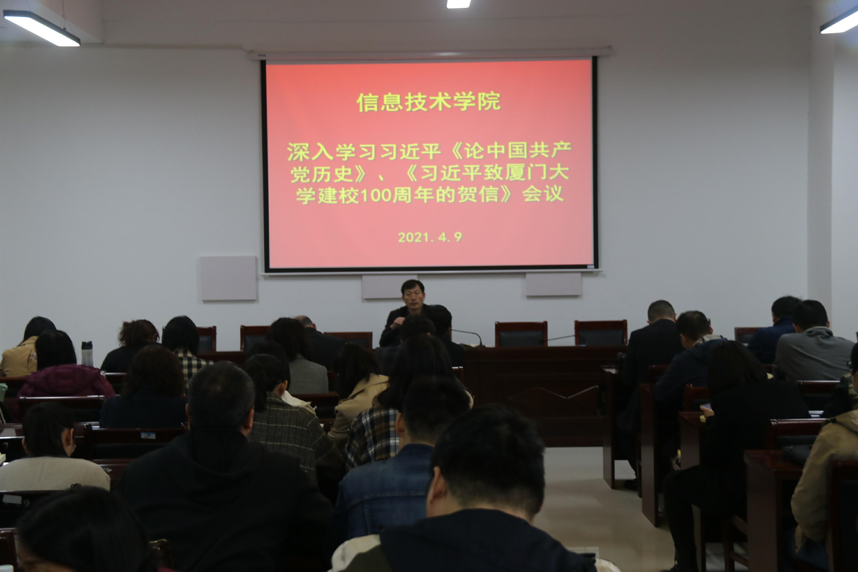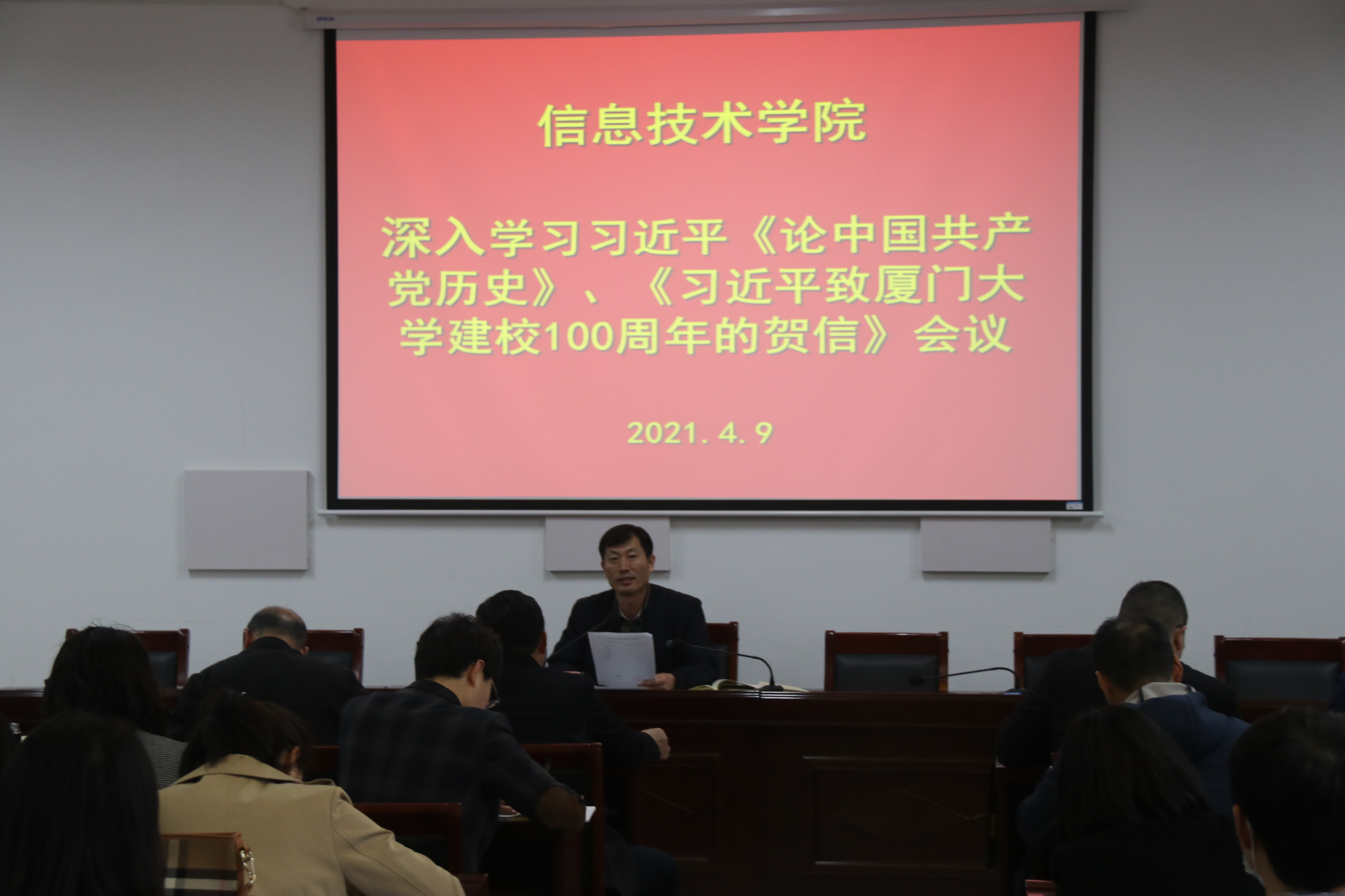 4月9日,BB贝博艾弗森于梁园校区三商楼112会议室举办深入学习习近平《论中国共产党历史》、《习近平致厦门大学建校一百周年的贺信》会议。会议由副经理李海涛主持,全体教职工参加了本次会议。