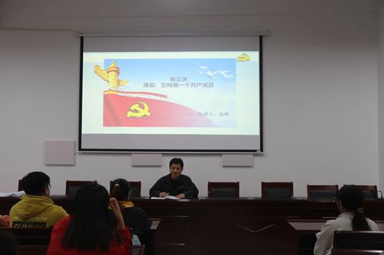 本次培训的主题为“怎样做一个共产党员”。课上,张辉书记首先介绍了《怎样做一个共产党员》的背景根源,接着从入党资格、党员的成分、入党手续、共产党员的标准四个方面全面概括了党员发展工作和教育管理工作的基本框架。他强调,共产党员要以“六条标准”、“四讲四有”为基本准则,在日常生活中严格贯彻落实五种革命精神,做一名合格的共产党员。张书记还组织大家进行讨论:请结合当前开展“两学一做”学习教育的情况,谈一谈党员“六条标准”有哪些现实意义,对个人有何启发。在场成员纷纷踊跃发言,气氛达到高潮。最后,全体入党积极分子共同欣赏了《筑梦中国:中华民族复兴之路》,本次培训宣告结束。