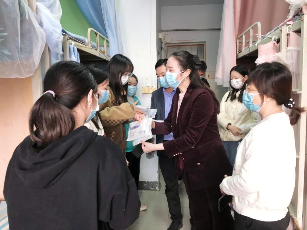 公司领导给宿舍员工发放卫生打扫用具和防疫物资