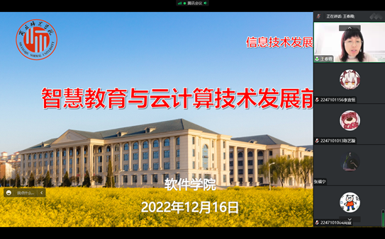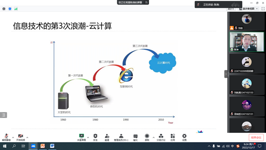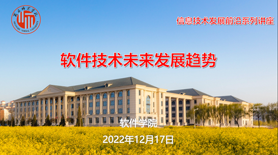 专题讲座上,陈涛在《智慧教育和云计算技术发展前沿》中详细阐述了信息技术的第三次浪潮云计算的概念和应用,以及Linux的相关知识,向同学们推荐了《信息化浪潮》、《数学之美》等经典著作。在《软件技术未来发展趋势》讲座中,详细介绍了2022年Gartner推出的新兴技术成熟度曲线,阐述了涉及到的最新前沿技术,给同学们介绍了最有效的学习方法--费曼学习法,并针对如何学习信息技术提出了几点学习建议。