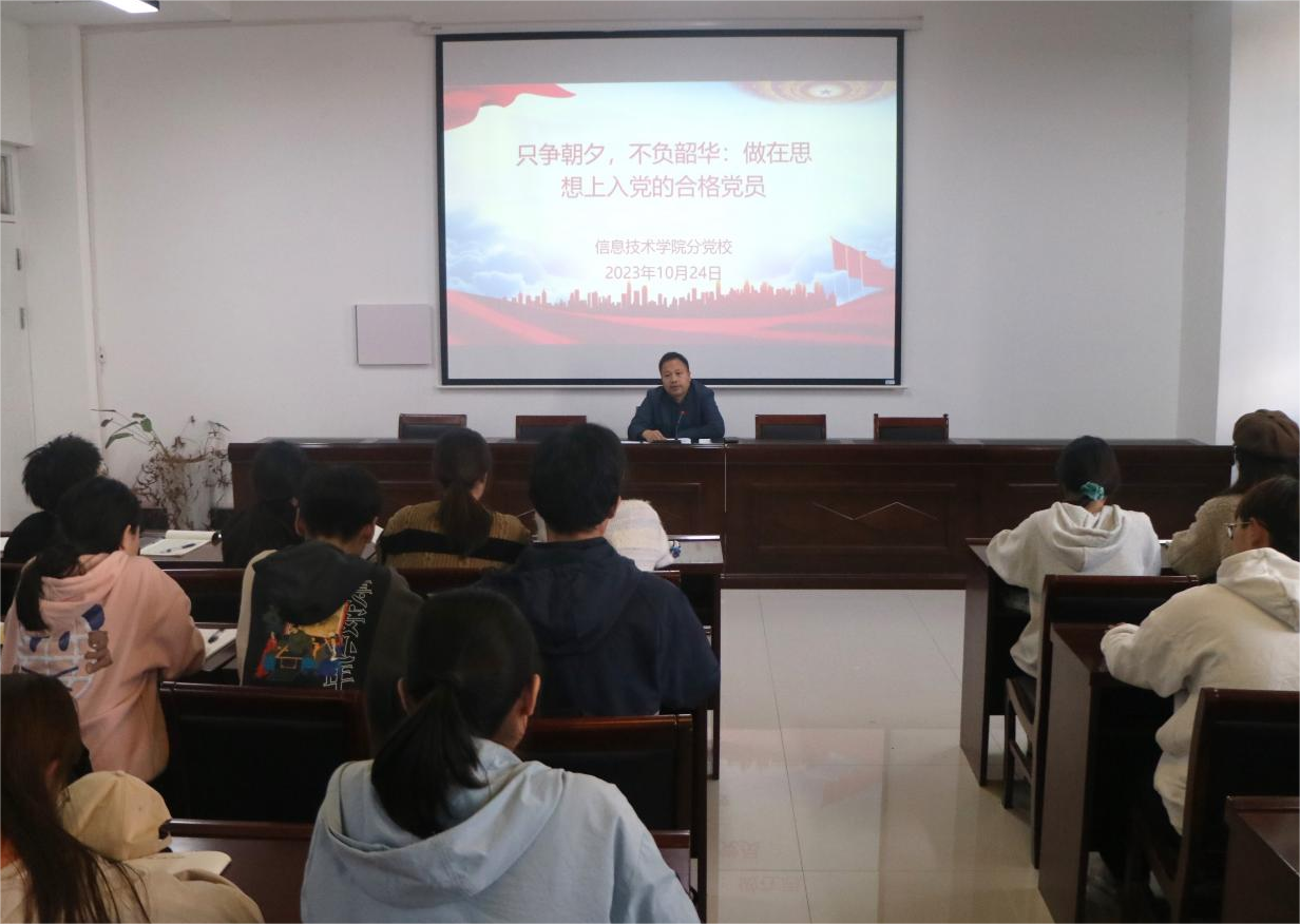 10月24日,BB贝博艾弗森开展了以“只争朝夕,不负韶华: 做在思想上入党的合格党员”为主题的党课培训,本次党课由软件公司党委书记王国华主讲,全体中级班入党积极分子参加。