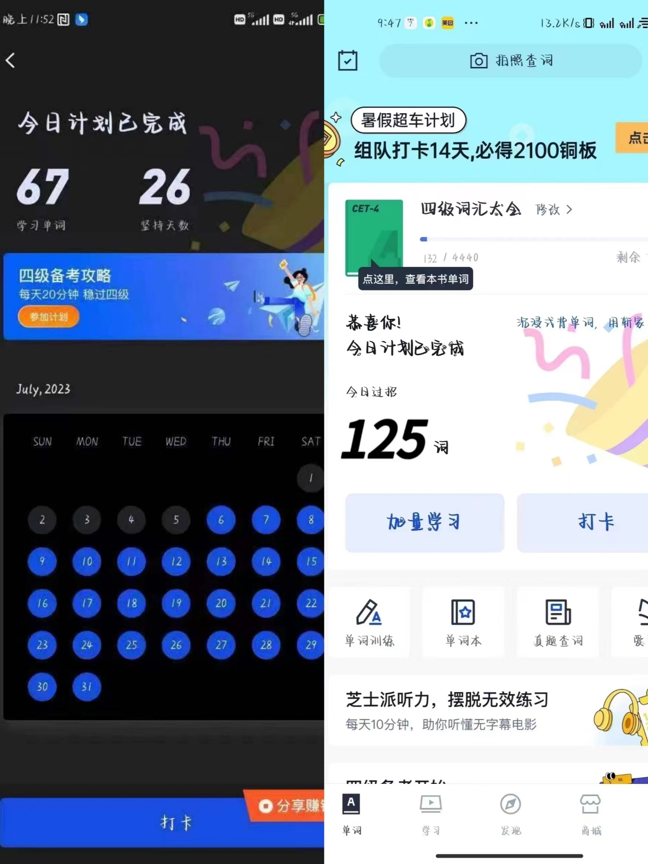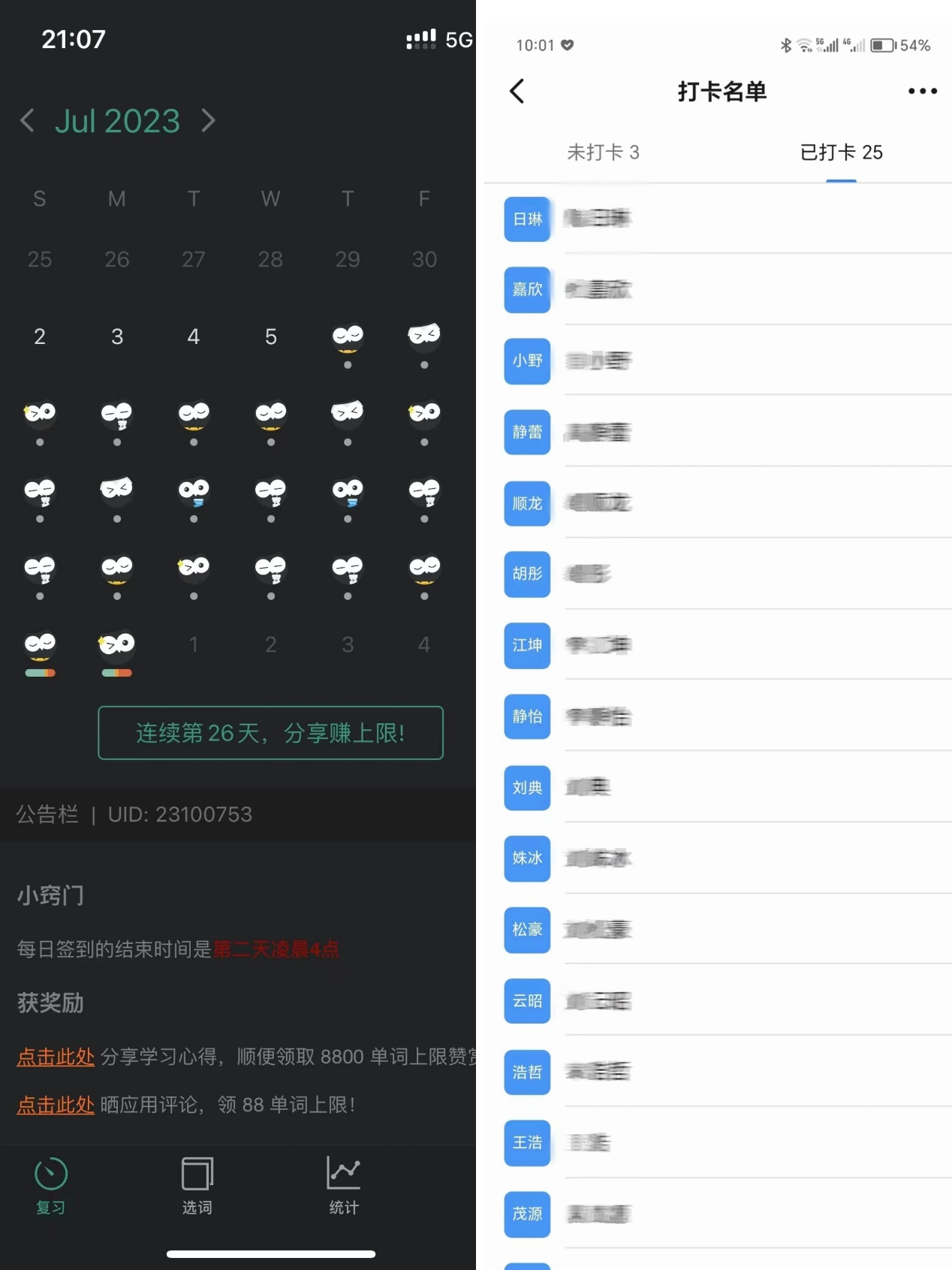 由各班自行商议选定适合本班学情英语学习小程序,鼓励同学们相互监督,相互鼓励。打卡活动的开展,帮助同学们培养良好的英语学习习惯,同时创造了共同努力的班级学习氛围。在暑假结束之后每班也会根据打卡情况推选五名员工作为“暑期学习之星”,公司将对这些同学进行表彰