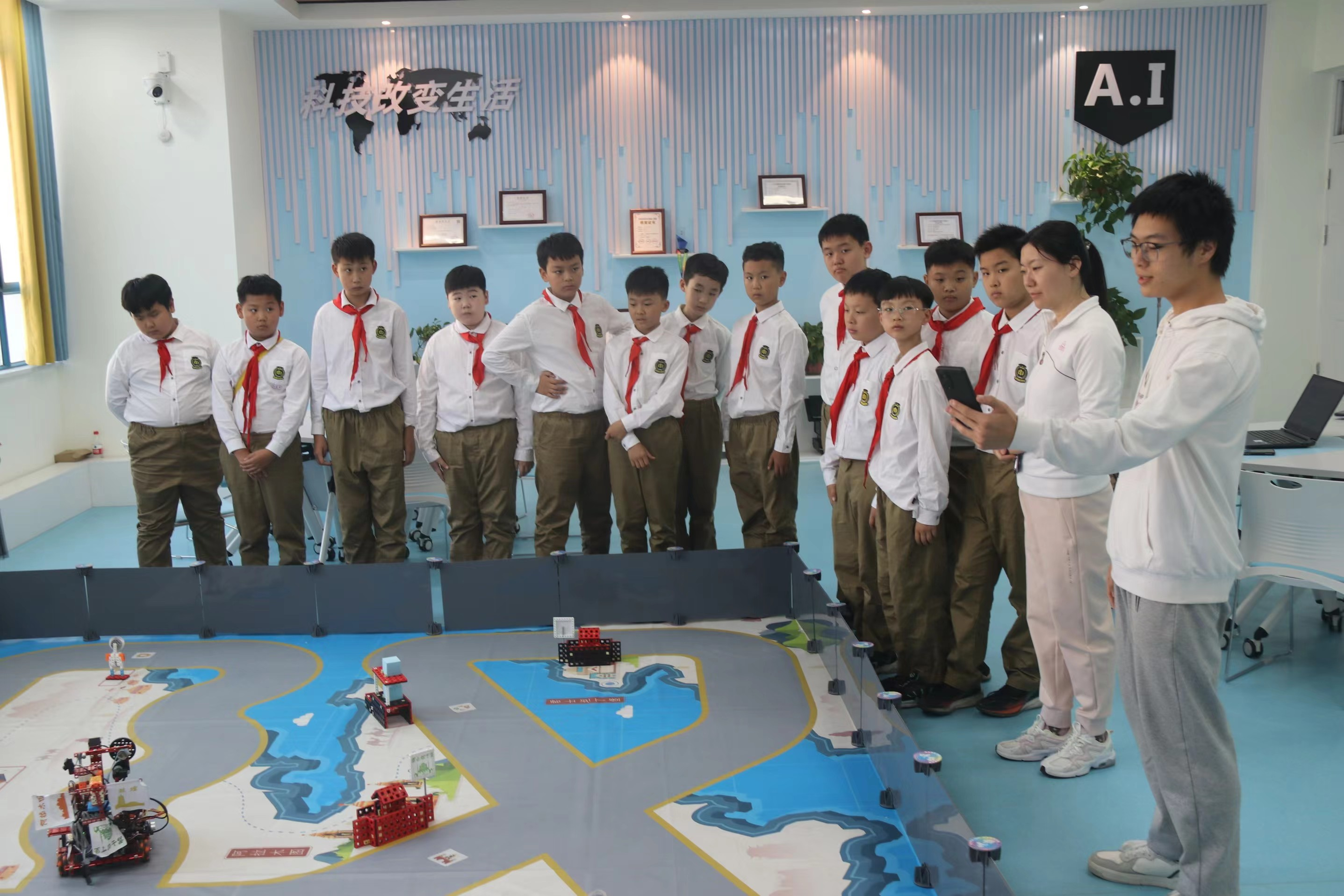 活动伊始,所有小员工在三商楼集体合影,随后他们分为六组,分别由志愿者带领参观,共参观五个实验室及社团项目,分别为人工智能,无人机,大数据技术,网络信息安全及虚拟现实科技之旅。每个实验室及社团项目都有专业的学长进行耐心讲解,小朋友们积极参与互动。