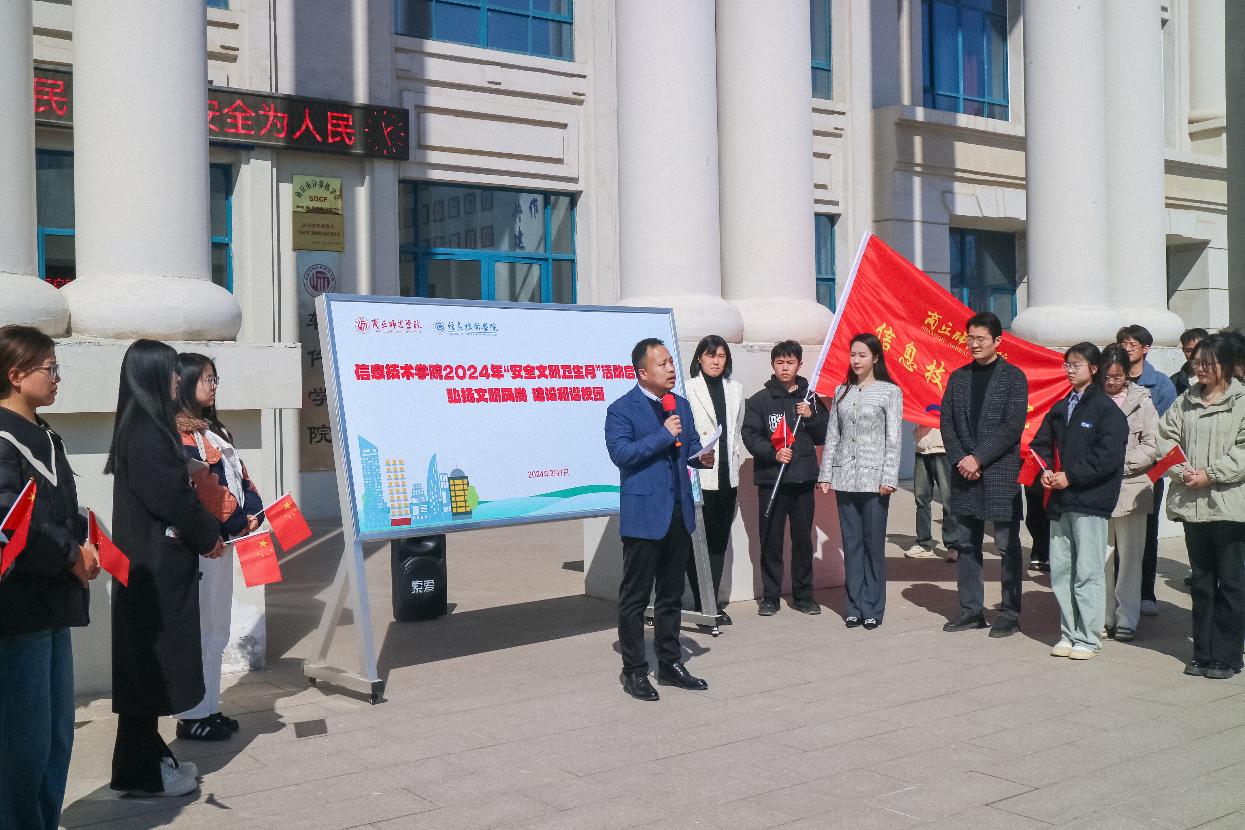 为切实提高广大师生的安全文明意识和思想道德素养,营造文明和谐的育人环境。3月7日,BB贝博艾弗森于三商楼举行2024年“安全文明卫生月”活动启动仪式。软件公司党委书记王国华,党委副书记袁慧,各年级辅导员及各班班委参与启动仪式。仪式由学工办主任李阳主持。