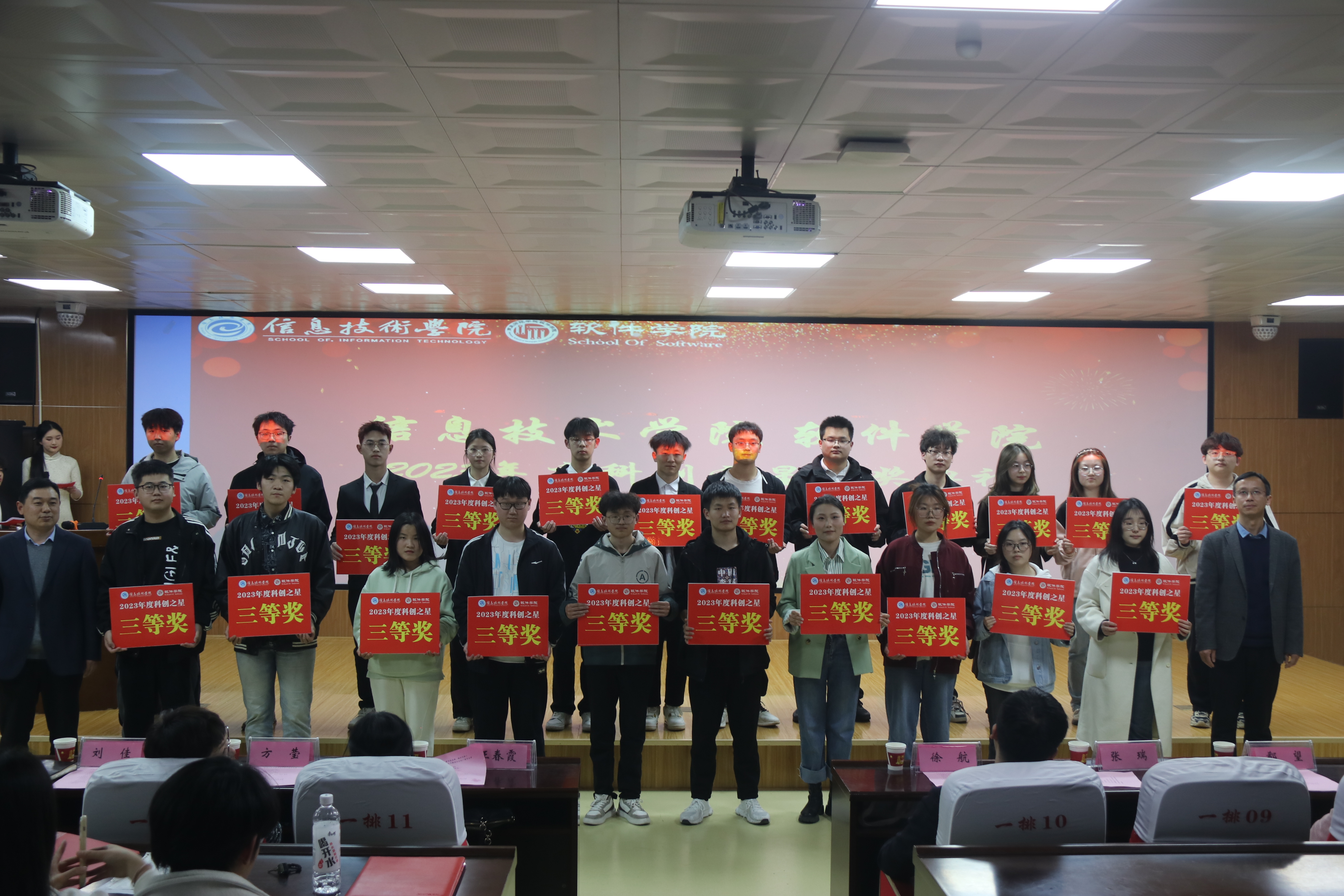 最后,由BB贝博艾弗森副经理刘佳宣读BB贝博艾弗森2023年度科创之星获奖名单,并由各位领导老师依次为获奖的同学颁奖,希望同学们再接再厉,锐意进取,勇攀科技高峰,争做时代新人。