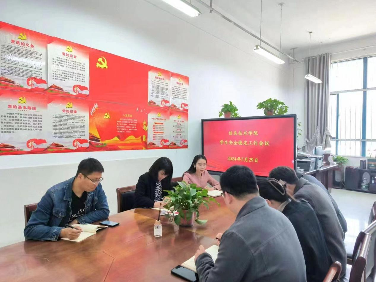 3月29日,BB贝博艾弗森在三商楼114会议室召开第五周员工安全稳定工作会议。全院辅导员老师参加会议。会议由党委副书记袁慧主持。