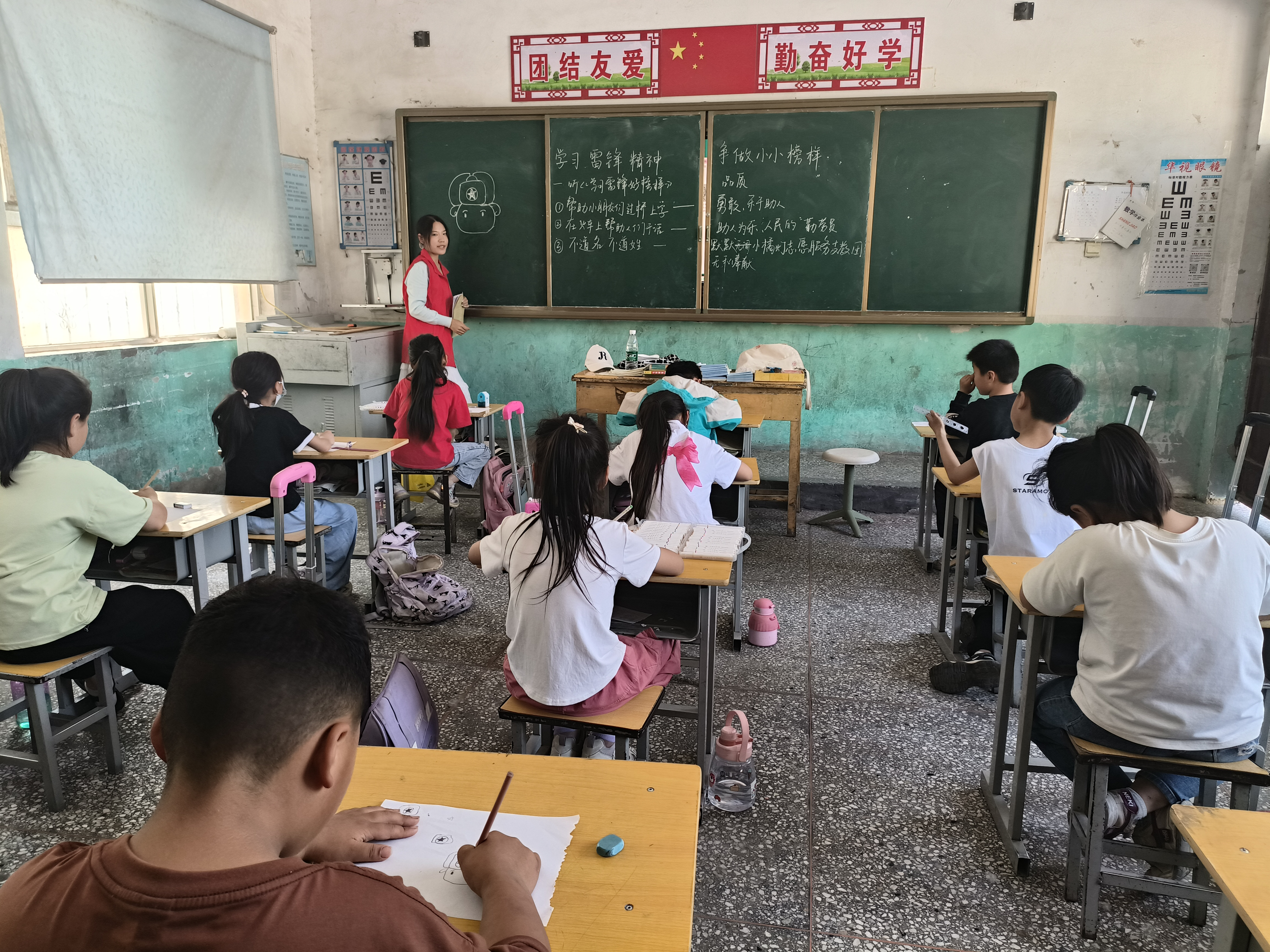 在张彭小学支教过程中,志愿者们将思政教育与科学课程相融合,培养孩子们爱国主义精神,激发他们对科学技术的兴趣与探索精神,实现思政教育中知识传授与价值引领融合。