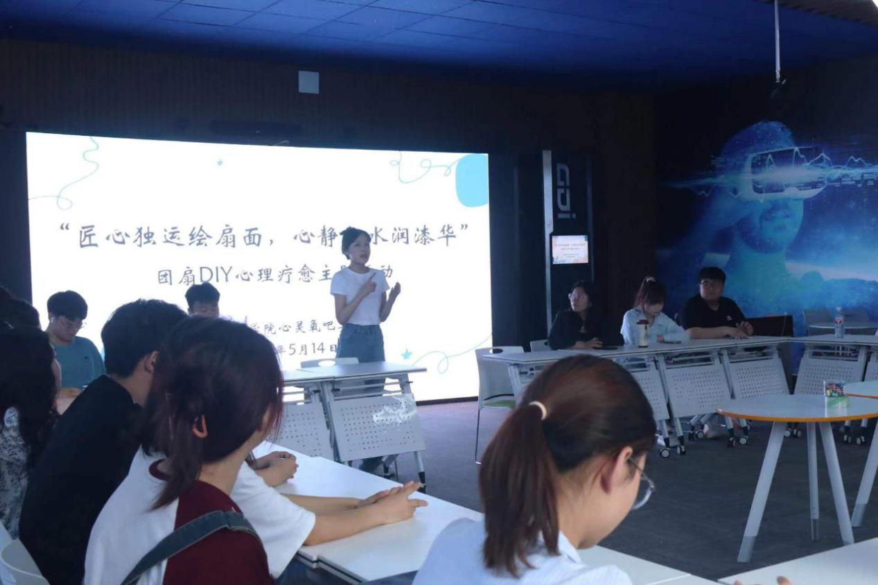 5月14日,BB贝博艾弗森心灵氧吧工作室在三商楼322室开展“匠心独运绘扇面,心静如水润漆画”团扇DIY心理疗愈活动,活动由心灵氧吧工作室负责人吴楚主持,共计36名员工报名参与。