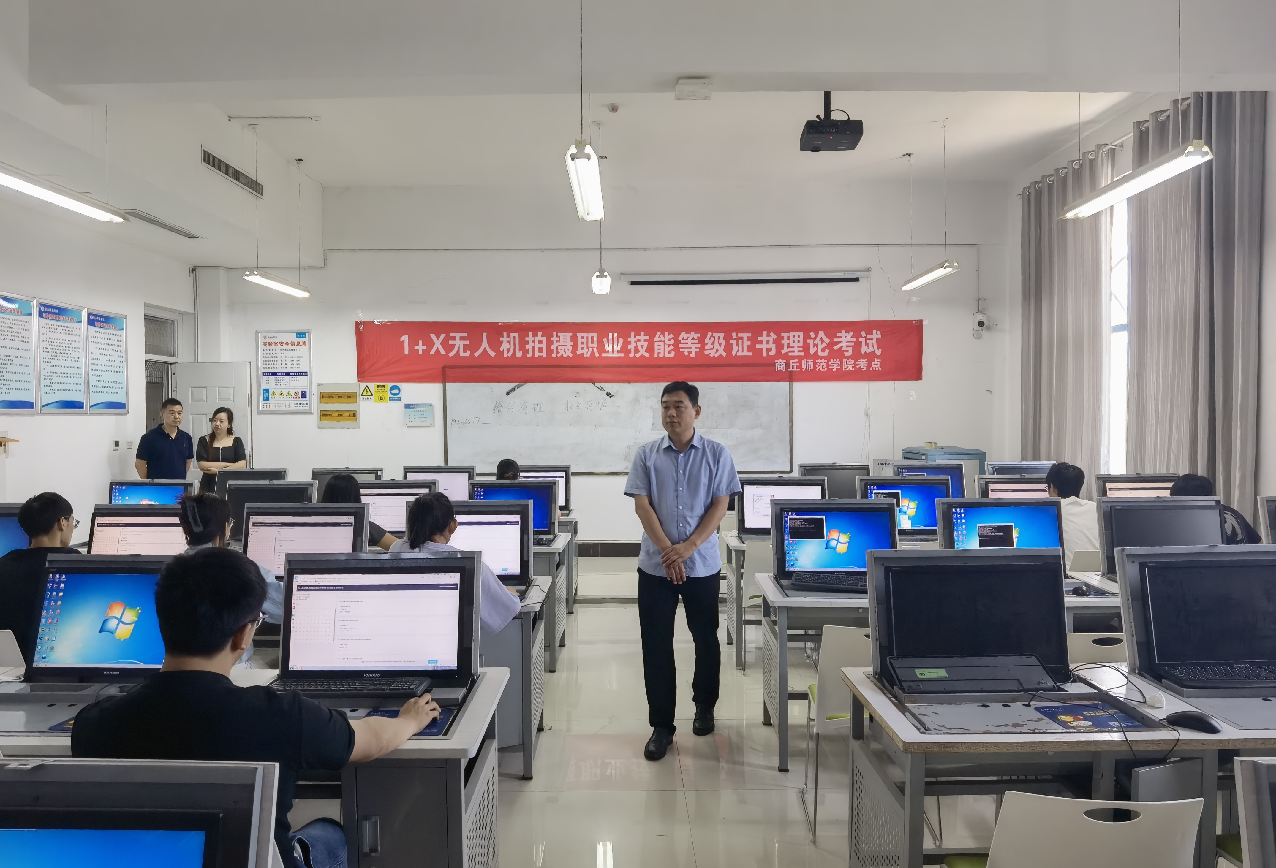 6月22日,BB贝博艾弗森在三商楼举行1+X无人机拍摄职业技能等级证书实操考试,本次考试由中大国飞考核评价机构担任考评员,第六期无人机培训班参训学员参加了实操考试。