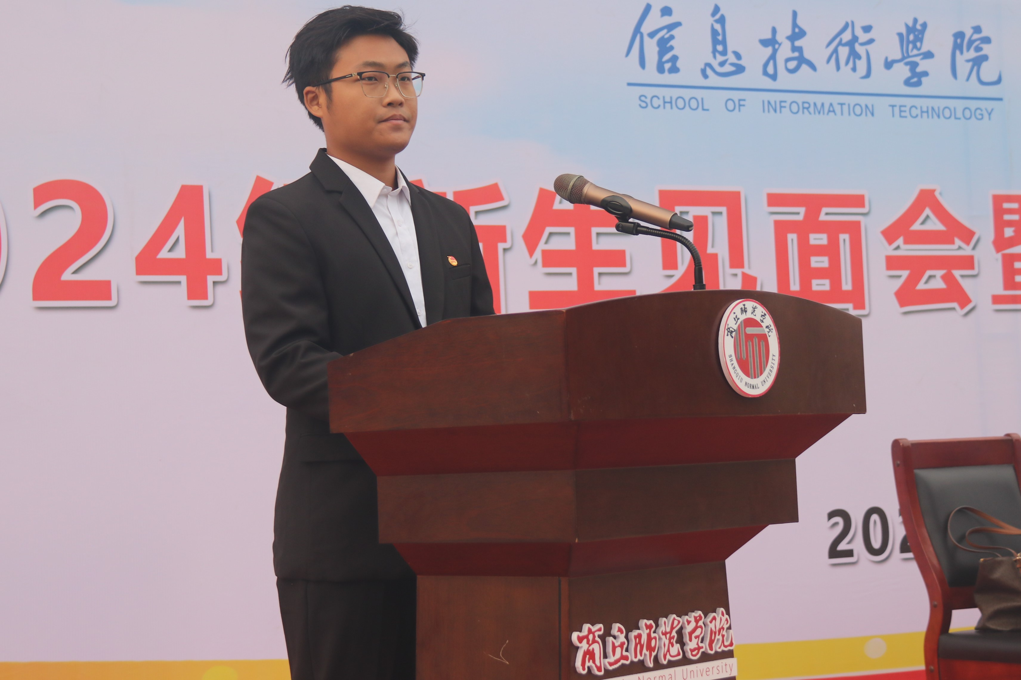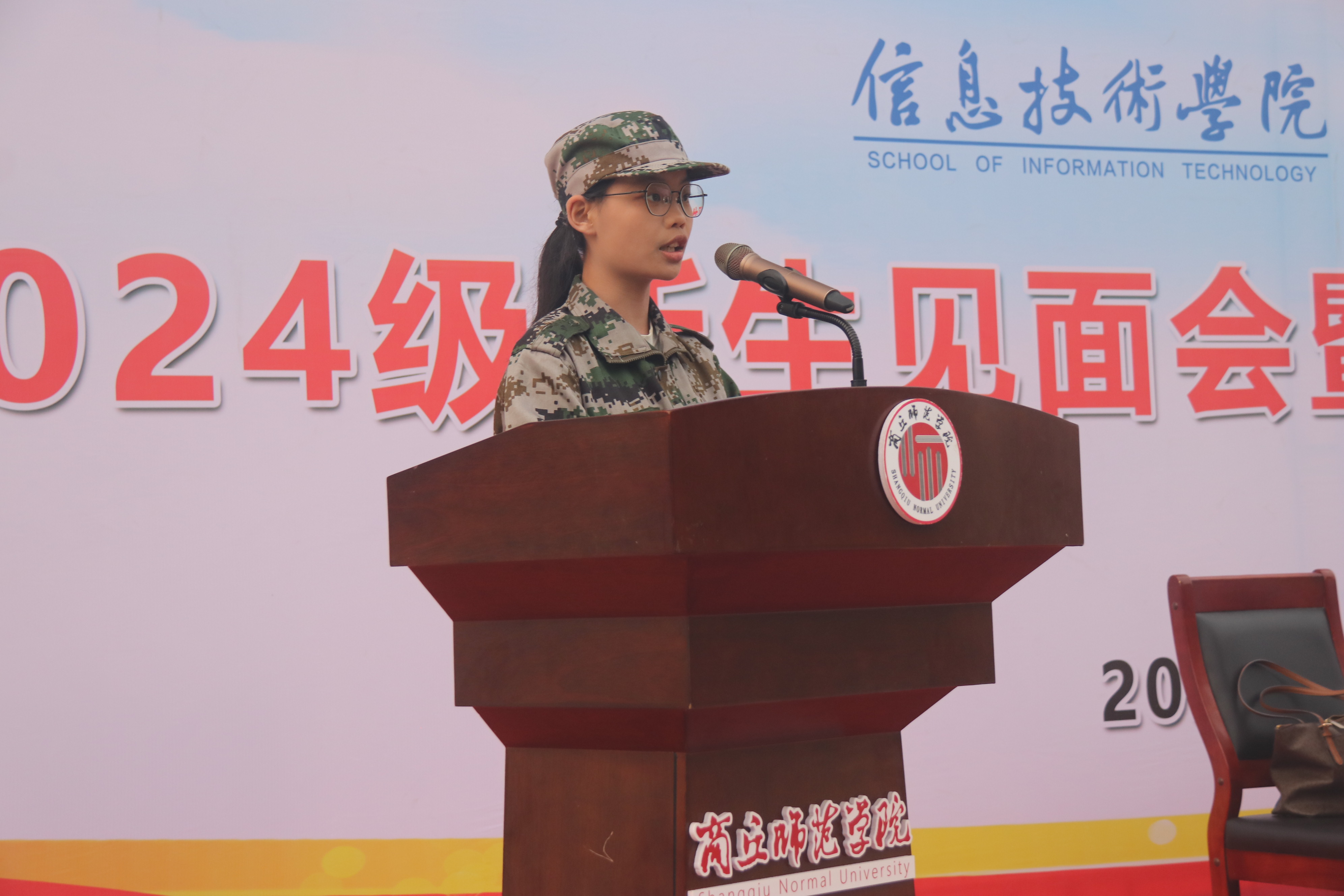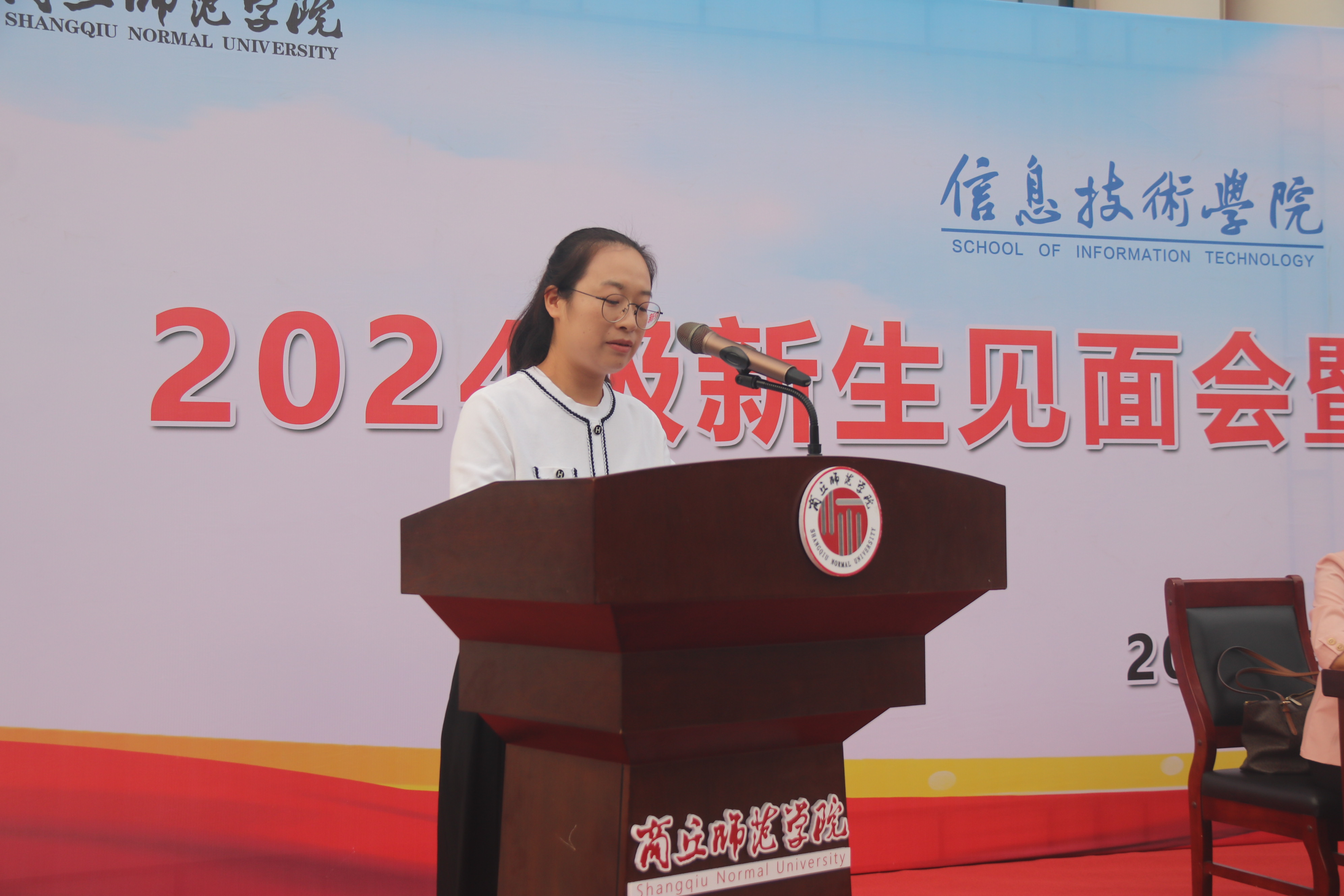 副经理刘佳、教师代表刘冠秀、员工代表李晨光分别从专业学习、科创竞赛和个人担当成长等方面分别给同学们做了分享,收获阵阵掌声。2024级计算机科学与技术专业新生冯舒佳代表全体新生做了表态发言。