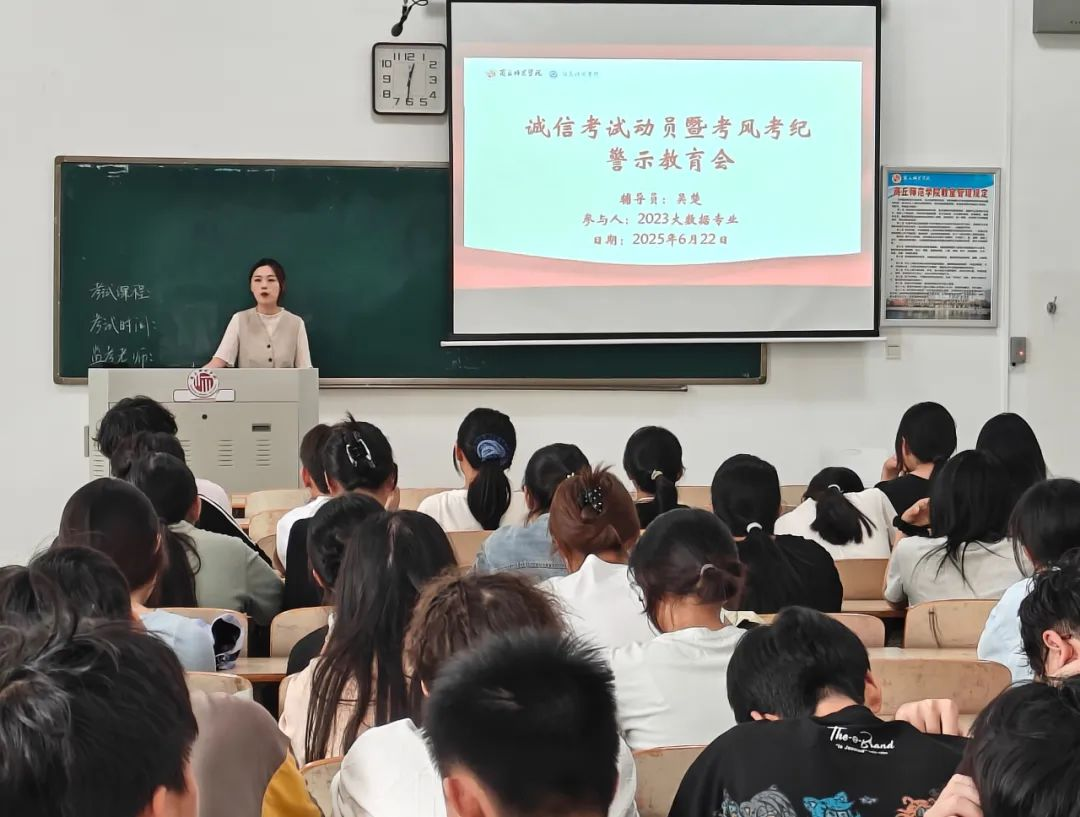 为深入贯彻立德树人根本任务,强化员工诚信意识,营造公平公正的考试环境,6月19日至20日,BB贝博艾弗森全体辅导员老师面向各班级组织开展2025年春季学期期末考试诚信教育主题班会,通过“思想引领+制度规范”双线推进,为构建清正考风奠定坚实基础。