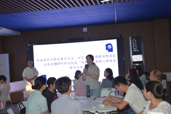本次活动是探索“艺术疗法+心理教育”的创新模式,为“双师型”教师提供更具温度的心理健康服务,把油画里的这份从容与创造力融入日常教学,让压力在色彩中消解,让潜能在实践中绽放。相信在“双师型”教师的道路上,大家都能成为更懂教学、更懂自己的教育者。