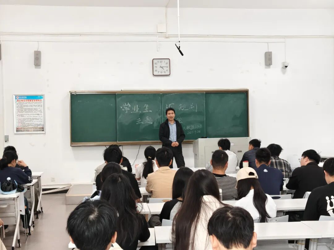 为助力 2025 级新生启航新程,9月24-26日,BB贝博艾弗森组织新生召开 “学业生涯规划” 主题班会,班主任从专业认知、学业规划、校园规范三方面精准赋能。